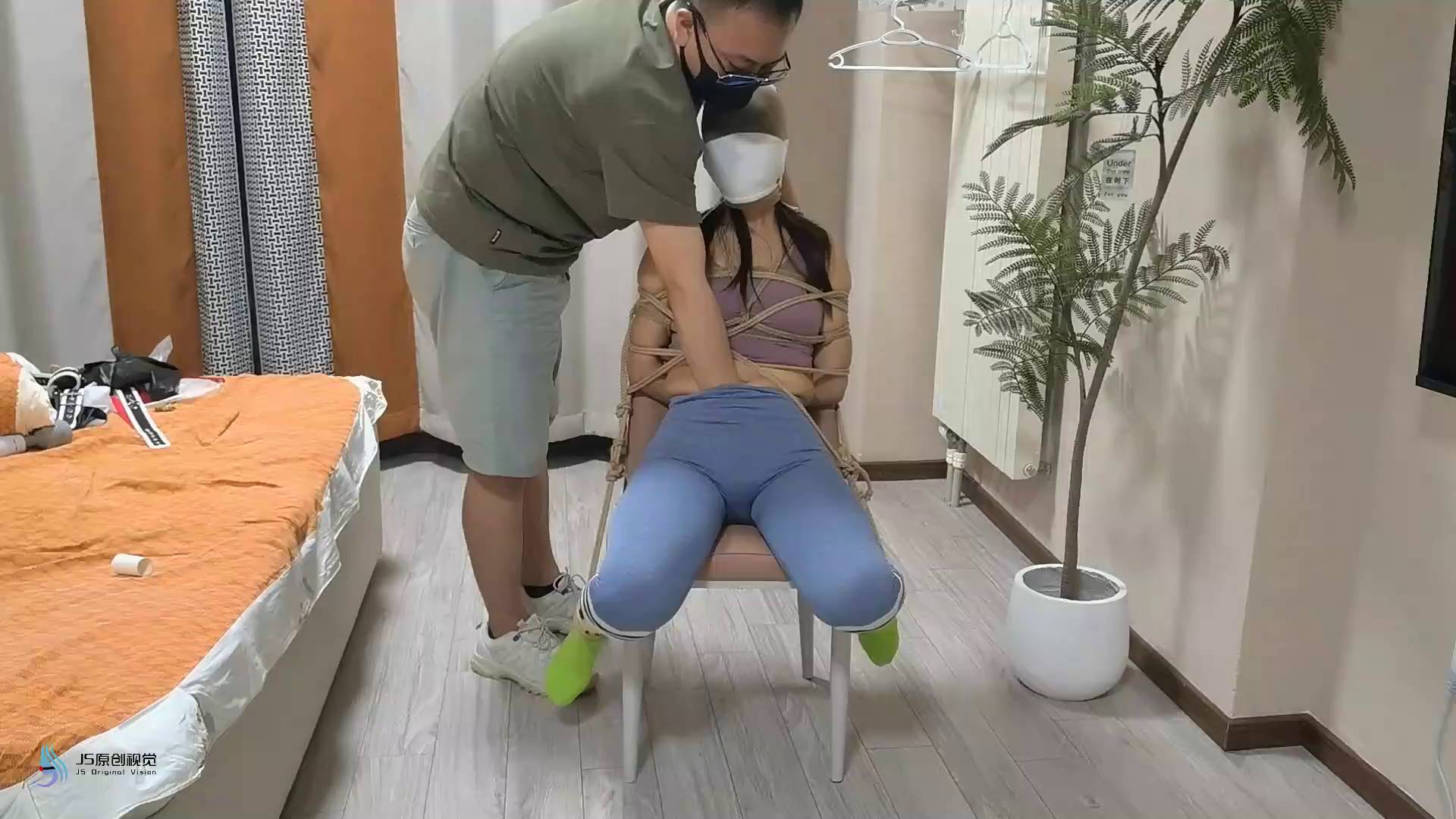 JS原创 凌熙瑜伽服椅子绑棉袜堵嘴绷带丝袜头套口罩棒棒刺激