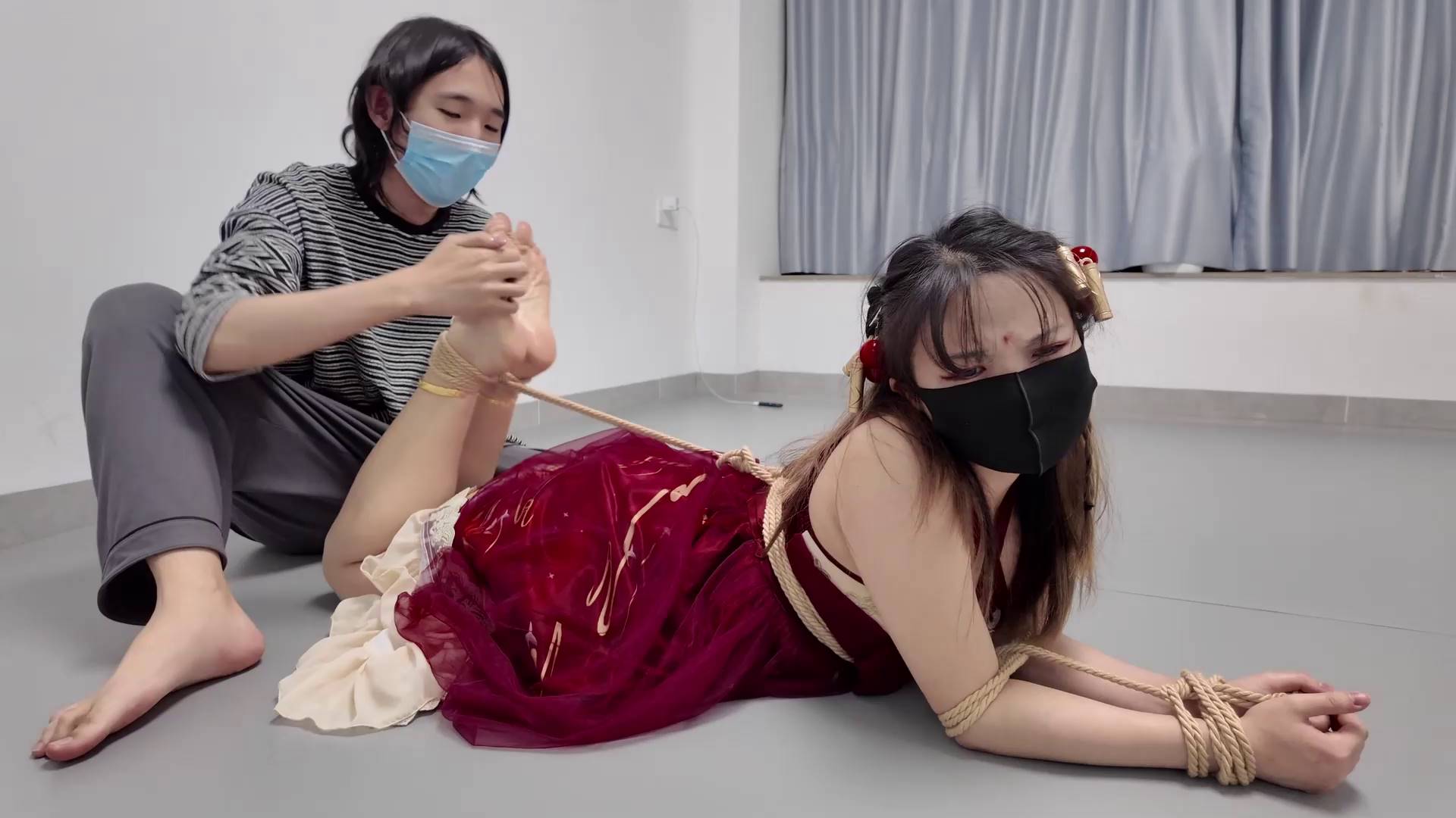 海砂原创 汉元素舞蹈落选的少女挑战电击海老缚逃脱失败游戏后惩罚光脚tk