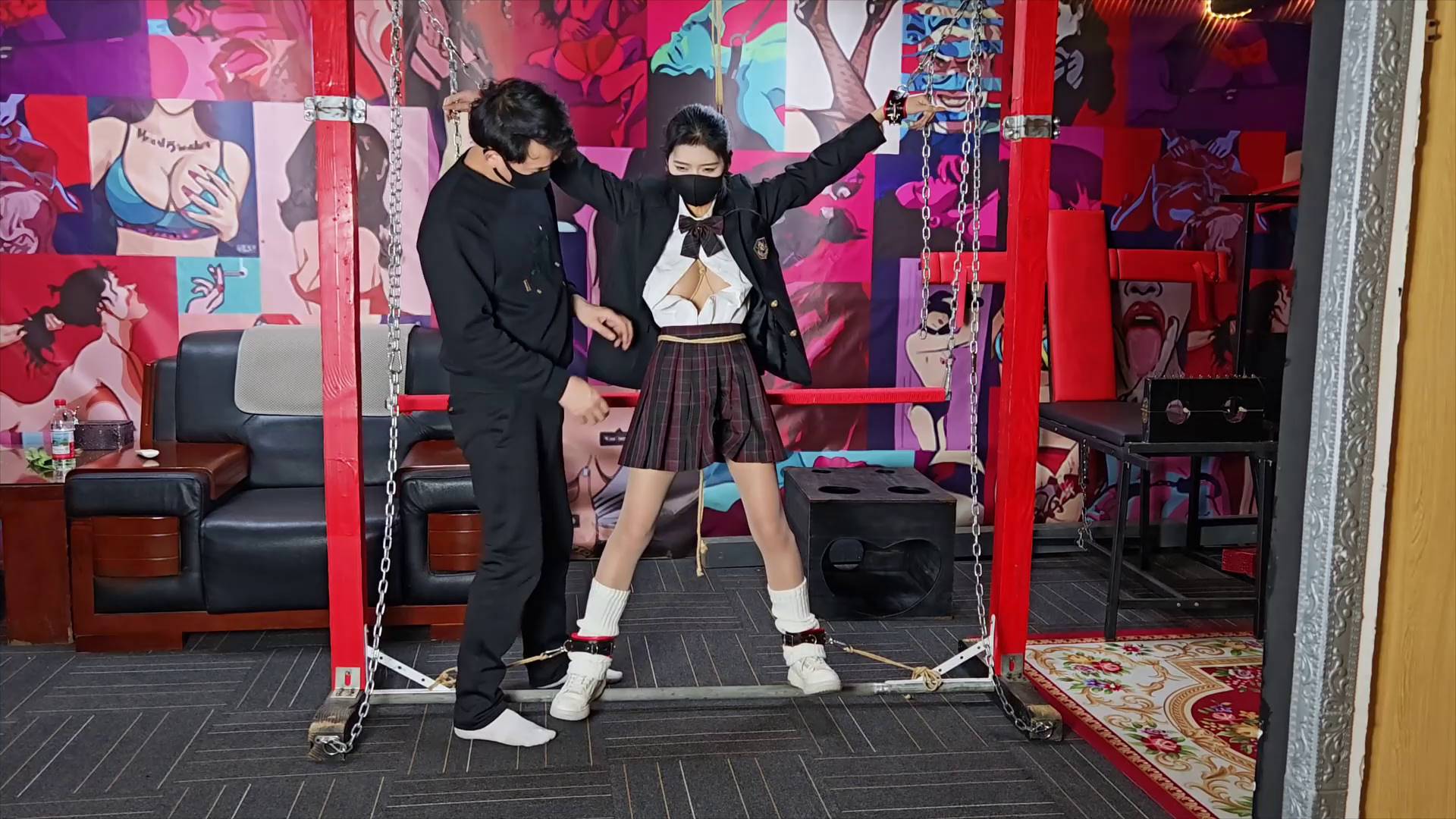 意之窗原创 定拍汤圆JK 着装 龟甲缚火字形吊在龙门架上