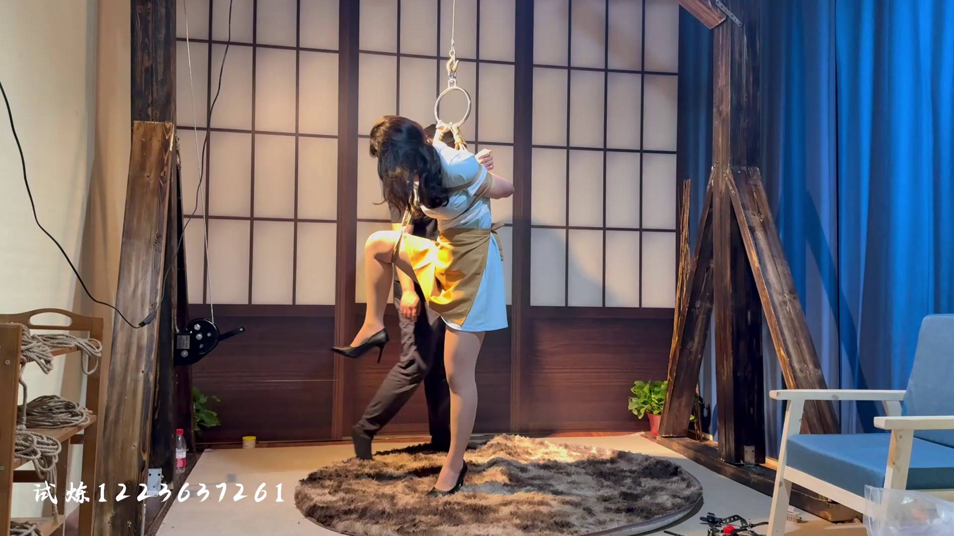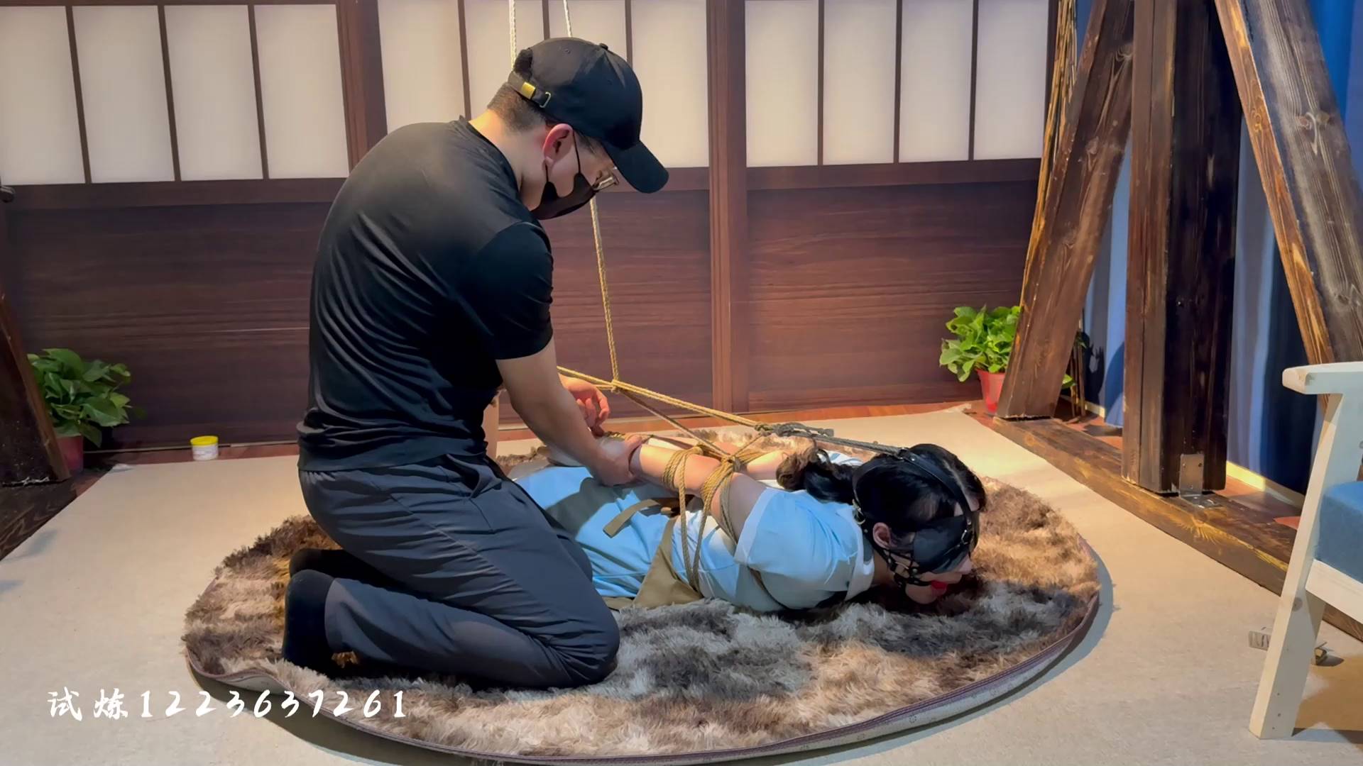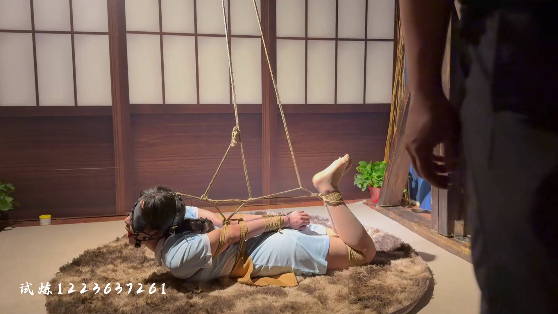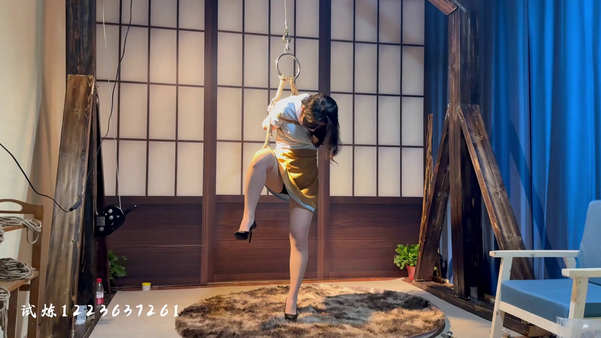试炼原创 极限仰头驷马马具口球手臂麻木崩溃直立单腿吊惩罚脚抽筋