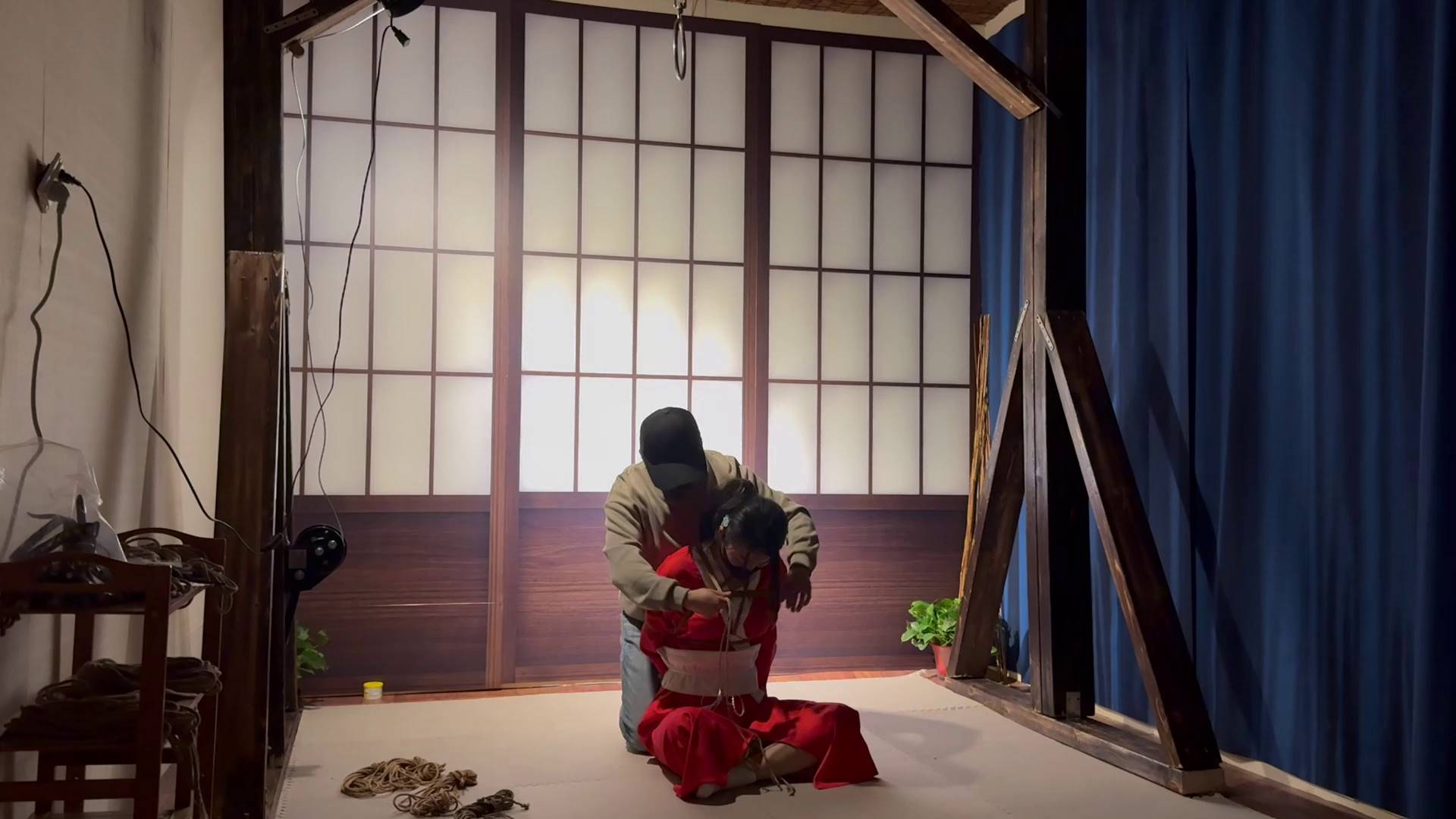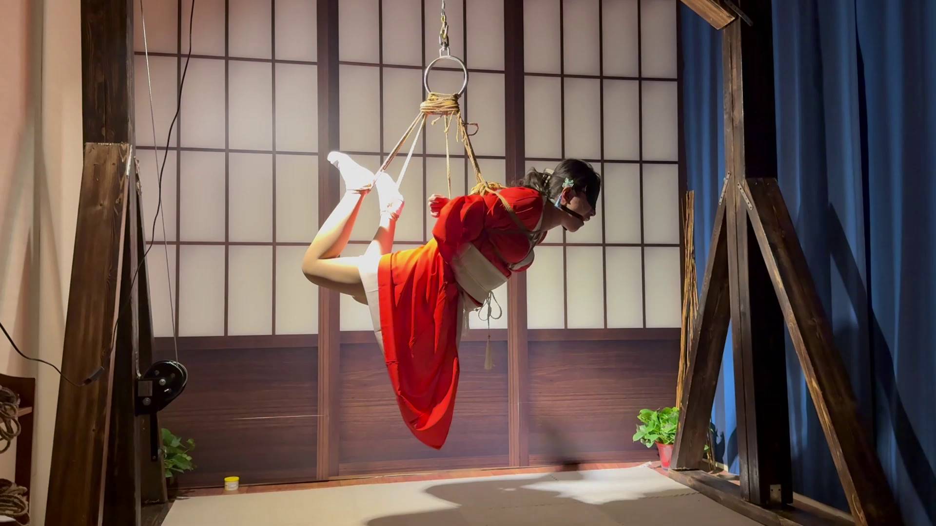 试炼原创 红衣少女肉丝驷马吊缚手麻求休息直立单手吊点脚尖发抖抽筋