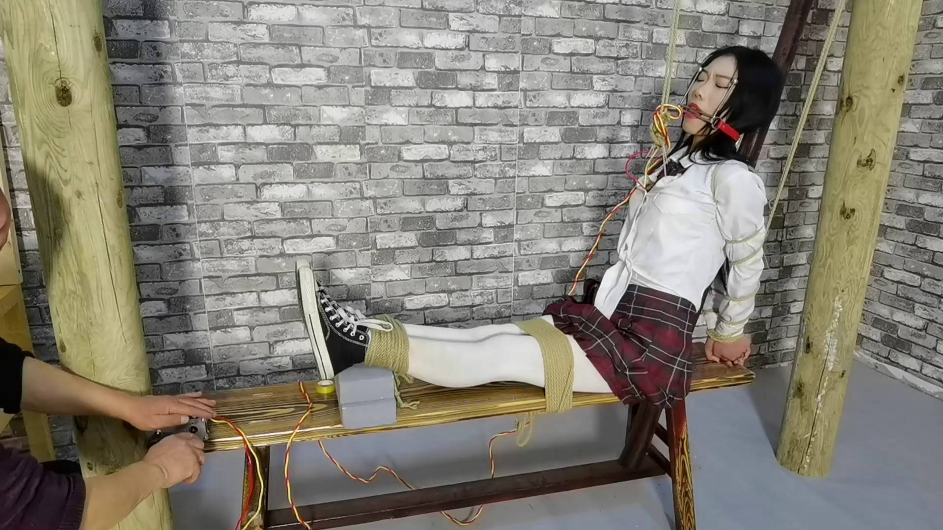 飞天原创 月仙儿被绑在老虎登上,把lu头通过2个滑轮吊在身后的手碗上,手只能偏上举着
