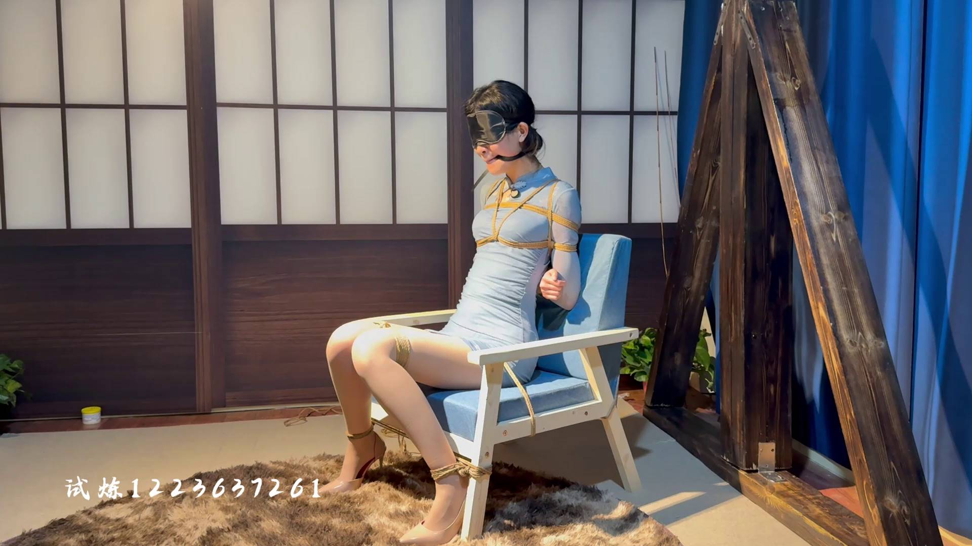 试炼原创 腿精小缘首绑蓝色旗袍超薄肉丝耐力非凡超级怕痒吊缚把自己玩嗨了