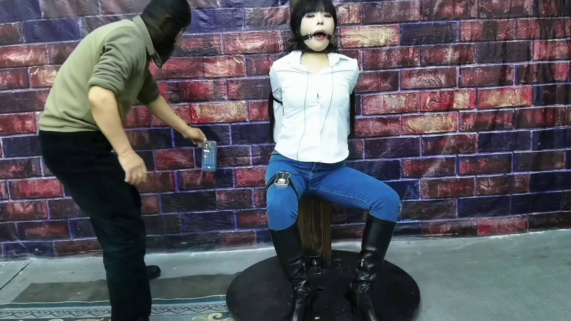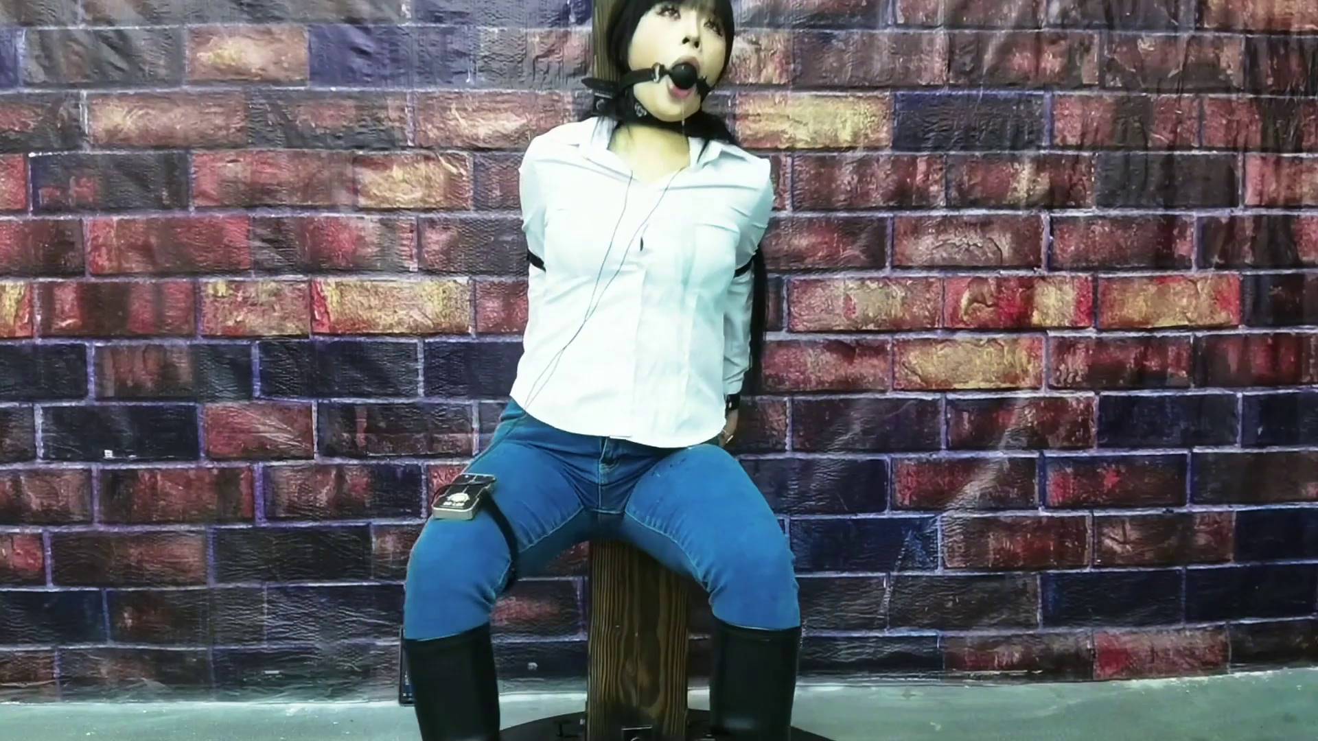 飞天原创 曼妮y具口球大量流口水,防毒面具棒棒刺激下潮喷