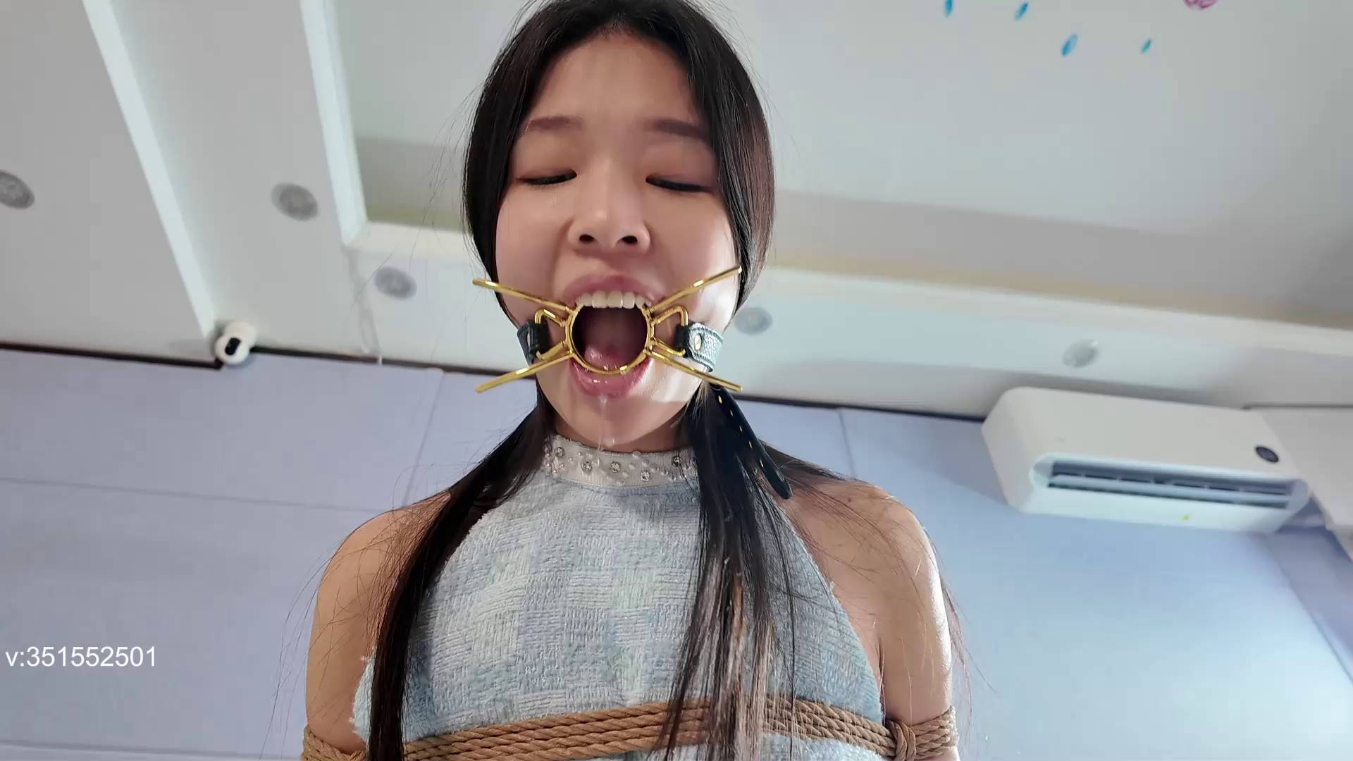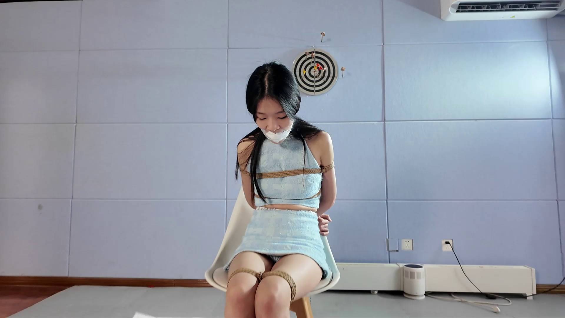 一绳所爱 婧舒被绑在椅子上,各种堵嘴挑战