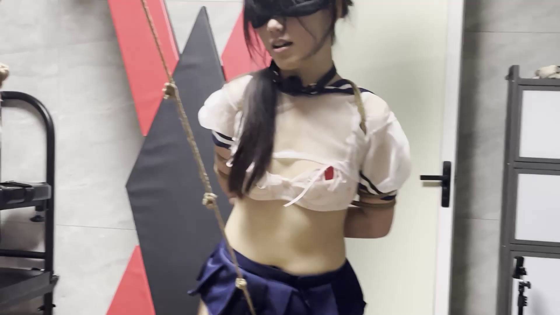 缚予原创 新模18岁高中生小妖学生装走绳股绳踮脚拉扯!打结走绳(来回拉扯摩擦) 内八绑腿