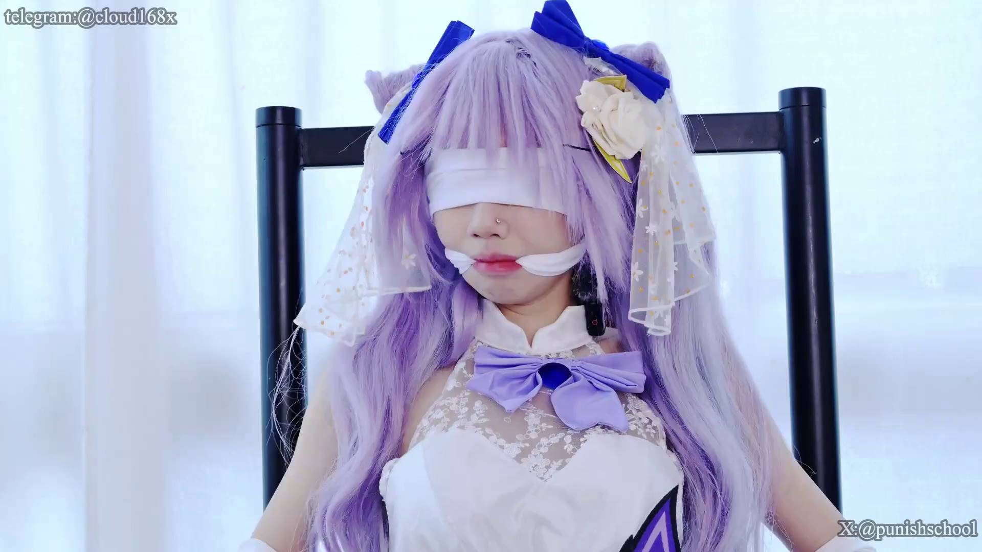 惩戒学园 花嫁刻晴的蒙眼堵窒西游戏 花嫁刻晴原地升天 原神 COS 花嫁刻晴 蒙眼堵嘴
