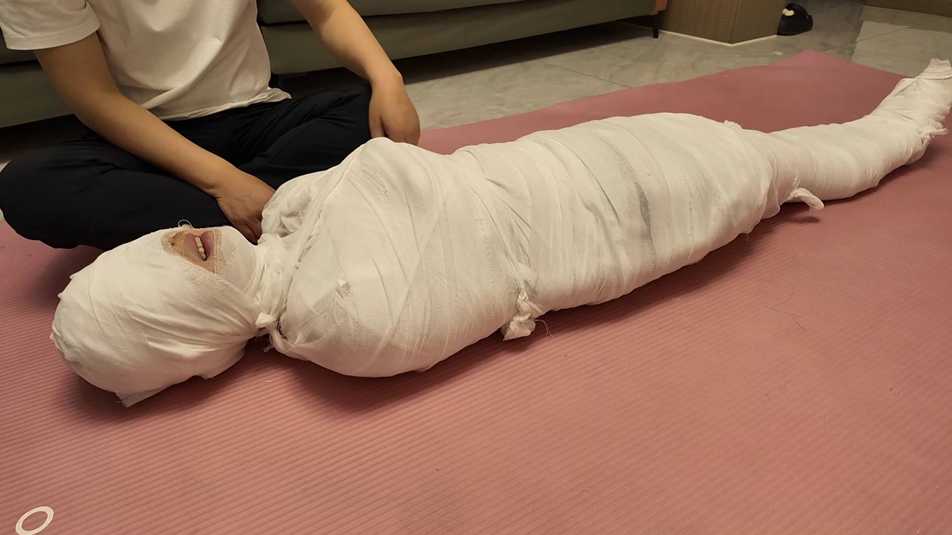 新月原创 02后的她 新模舞蹈女孩佳怡 黑丝盘腿 蒙眼口塞 解缚挣扎