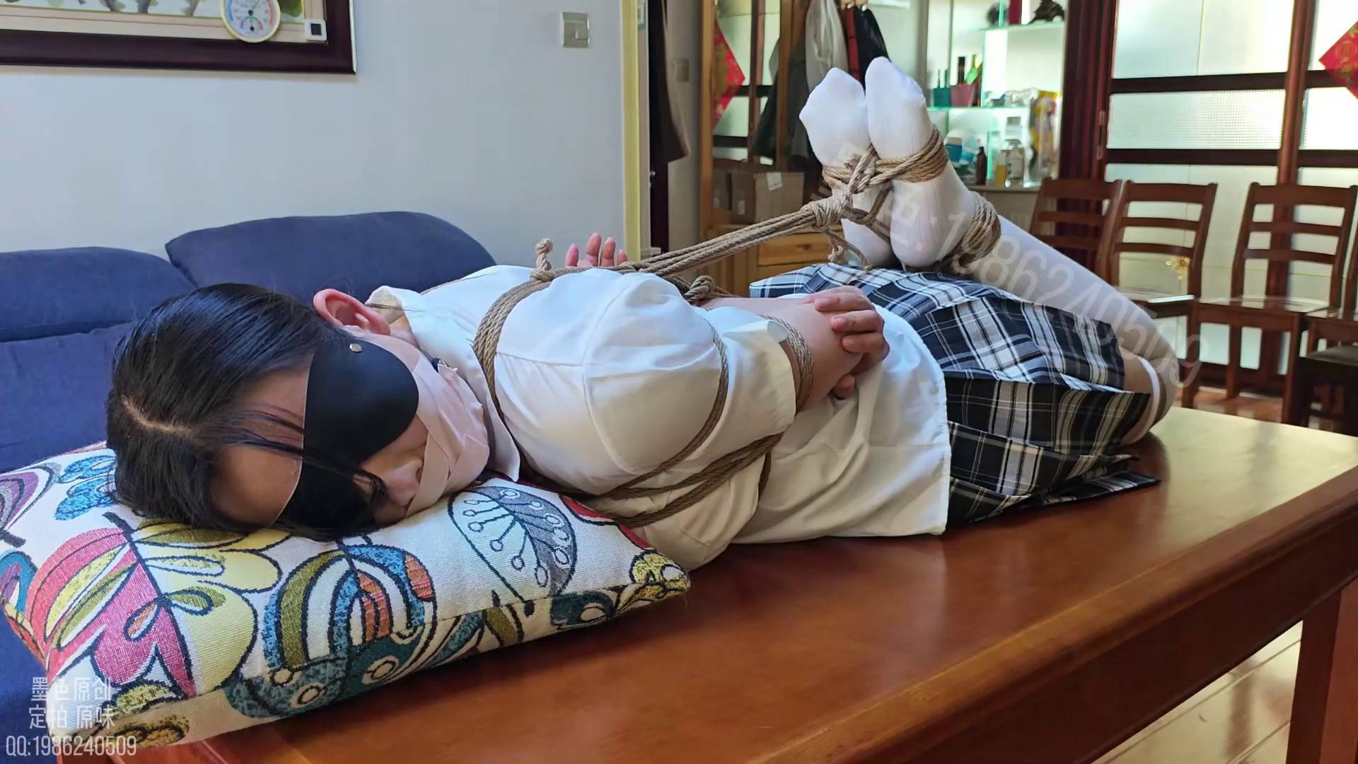 墨色原创 jk餐桌极限驷马长时间放置 感官剥夺 口水拉丝 镜头怼脸 身体刺激 揉捏挠痒打屁股