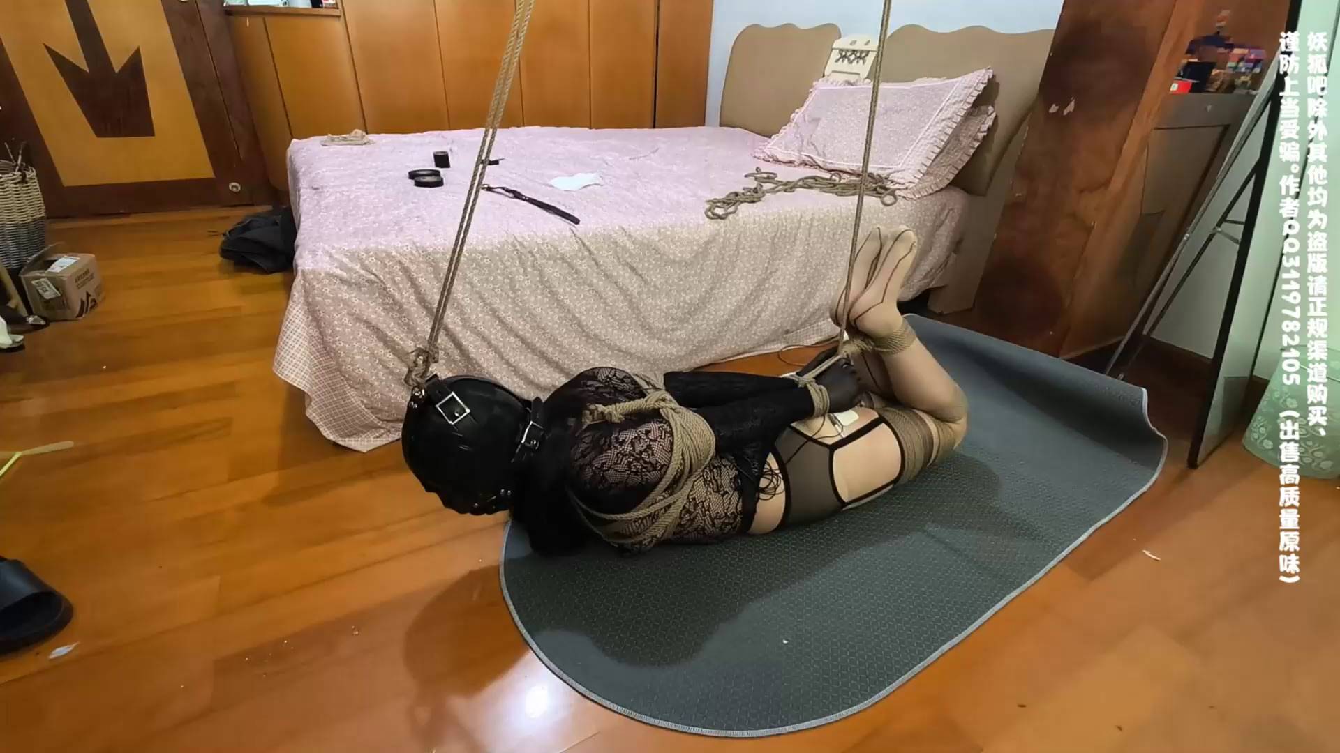 我的媳妇 手丝+网衣+双丝吊带、超紧驷马强制抬头固定、内置玩具、连续电击会跳动的屁屁、胶带子夕挣扎、口舌