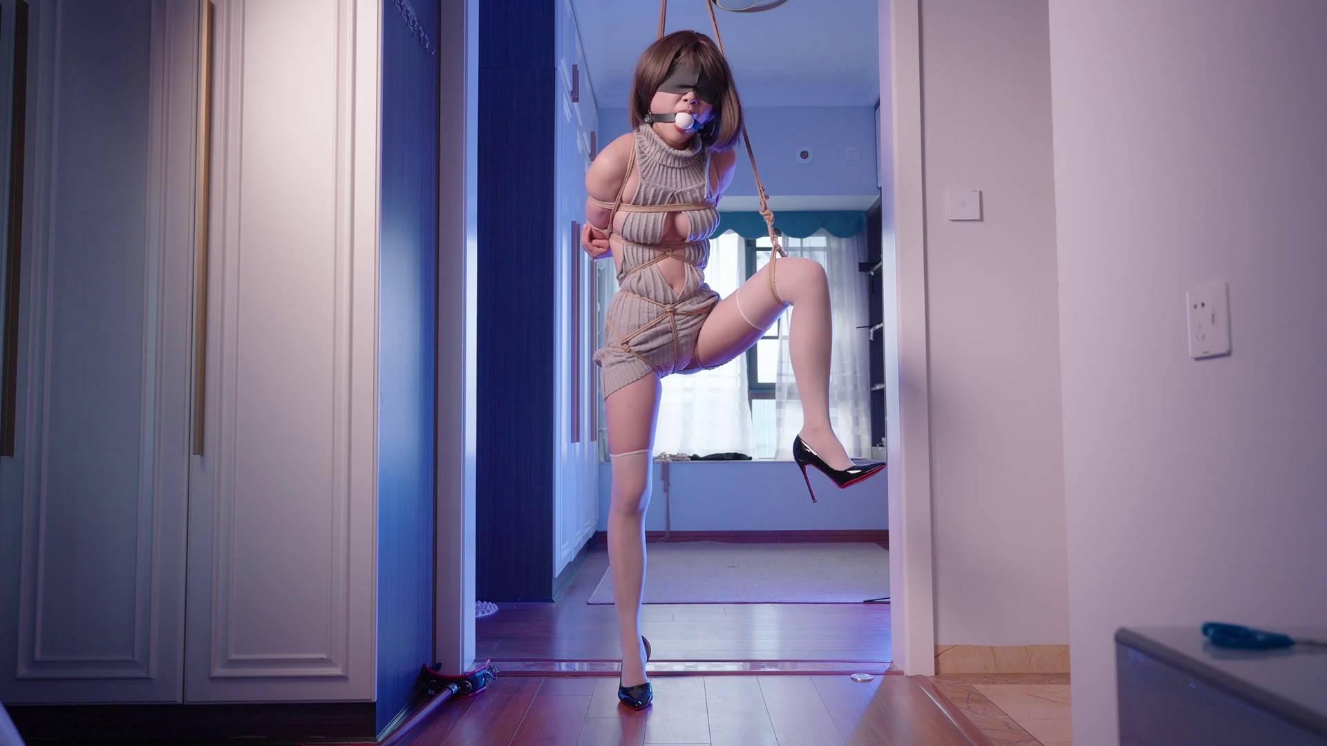 丝米 欲望贷 虚荣心作祟的Jk少女拍下脱衣视频,以此被威胁,开腿器吊缚+12cm高跟罚站+乳夹+单腿吊+跳淡固定,为防...