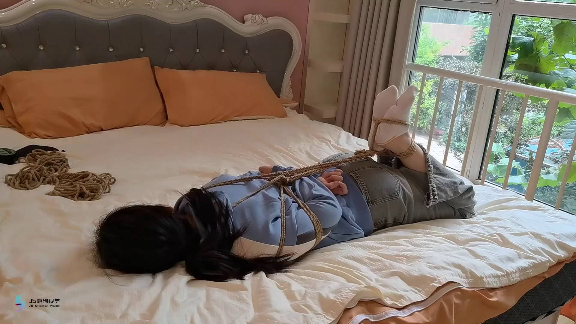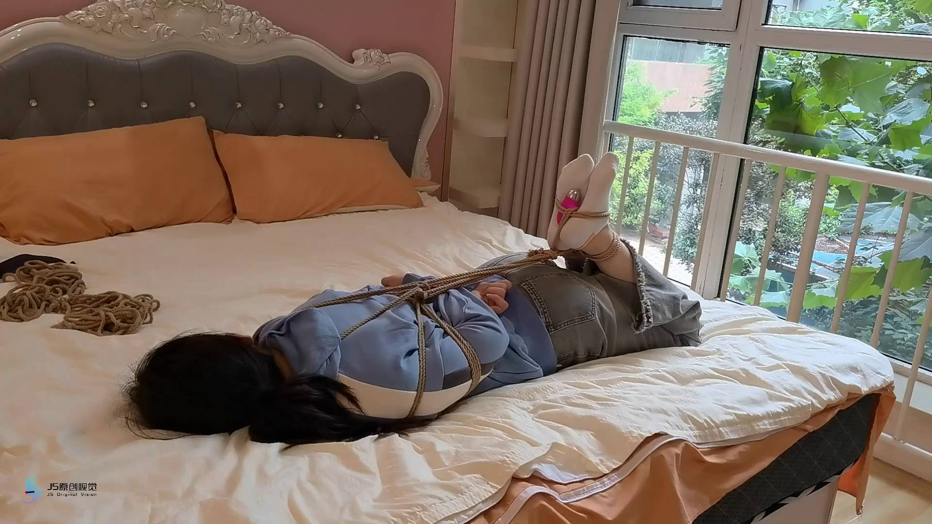 JS原创 梦琪床上白袜驷马捆绑胶带封嘴TD刺激脚恋足