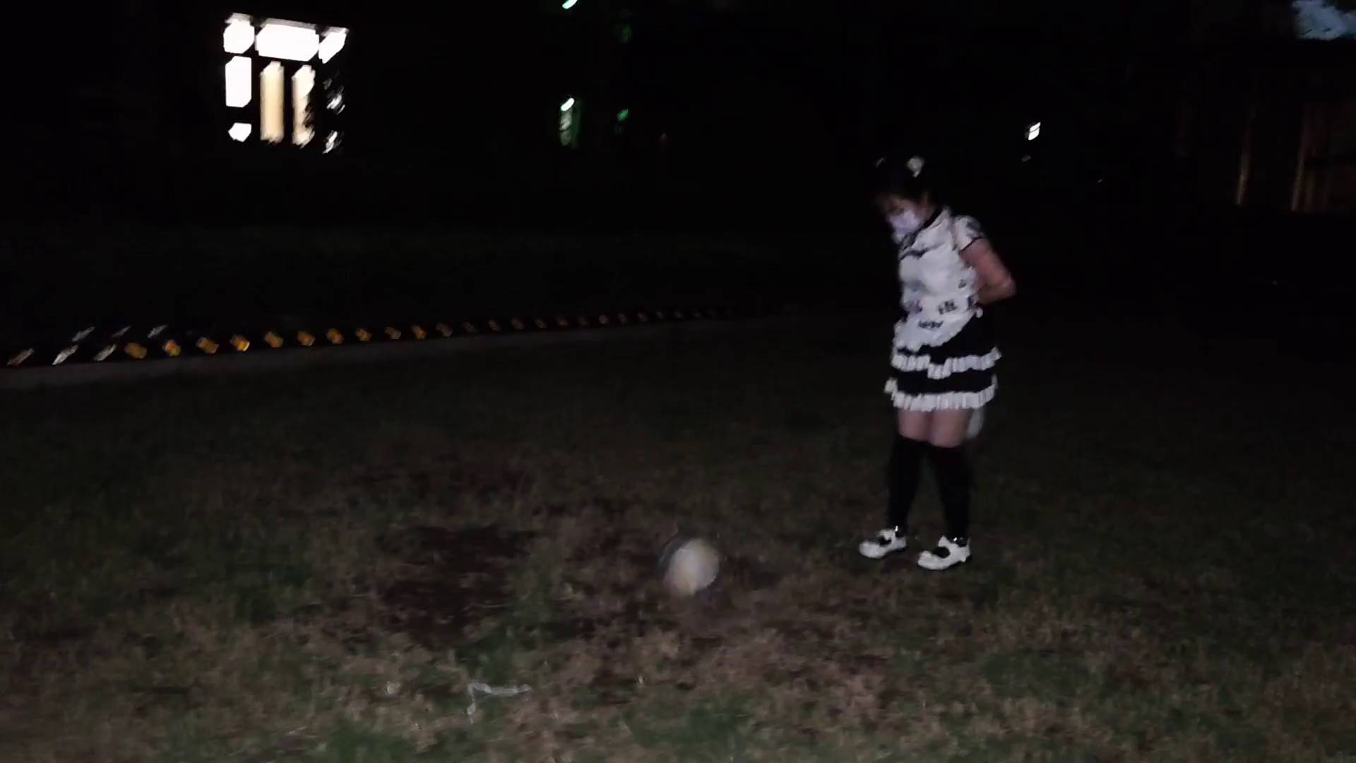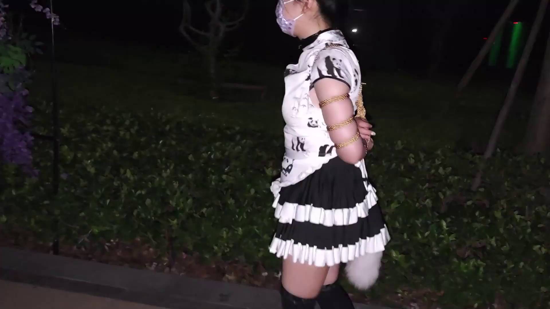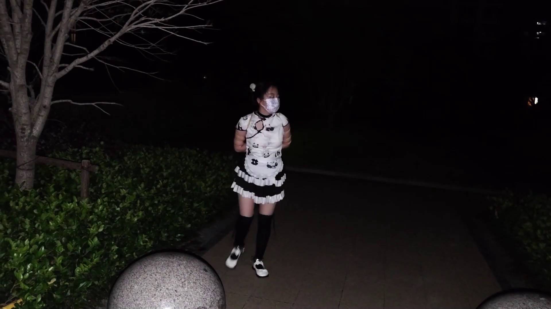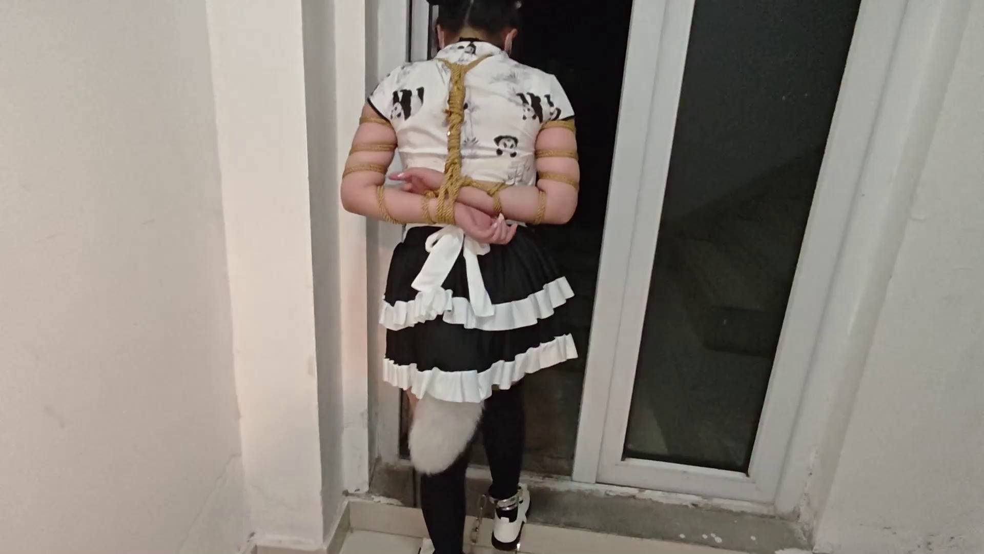 网友原创 小厨娘苏苏丸子头女仆黑丝尾巴小区行走五花大绑戴脚镣踢足球+拴在树下td折磨