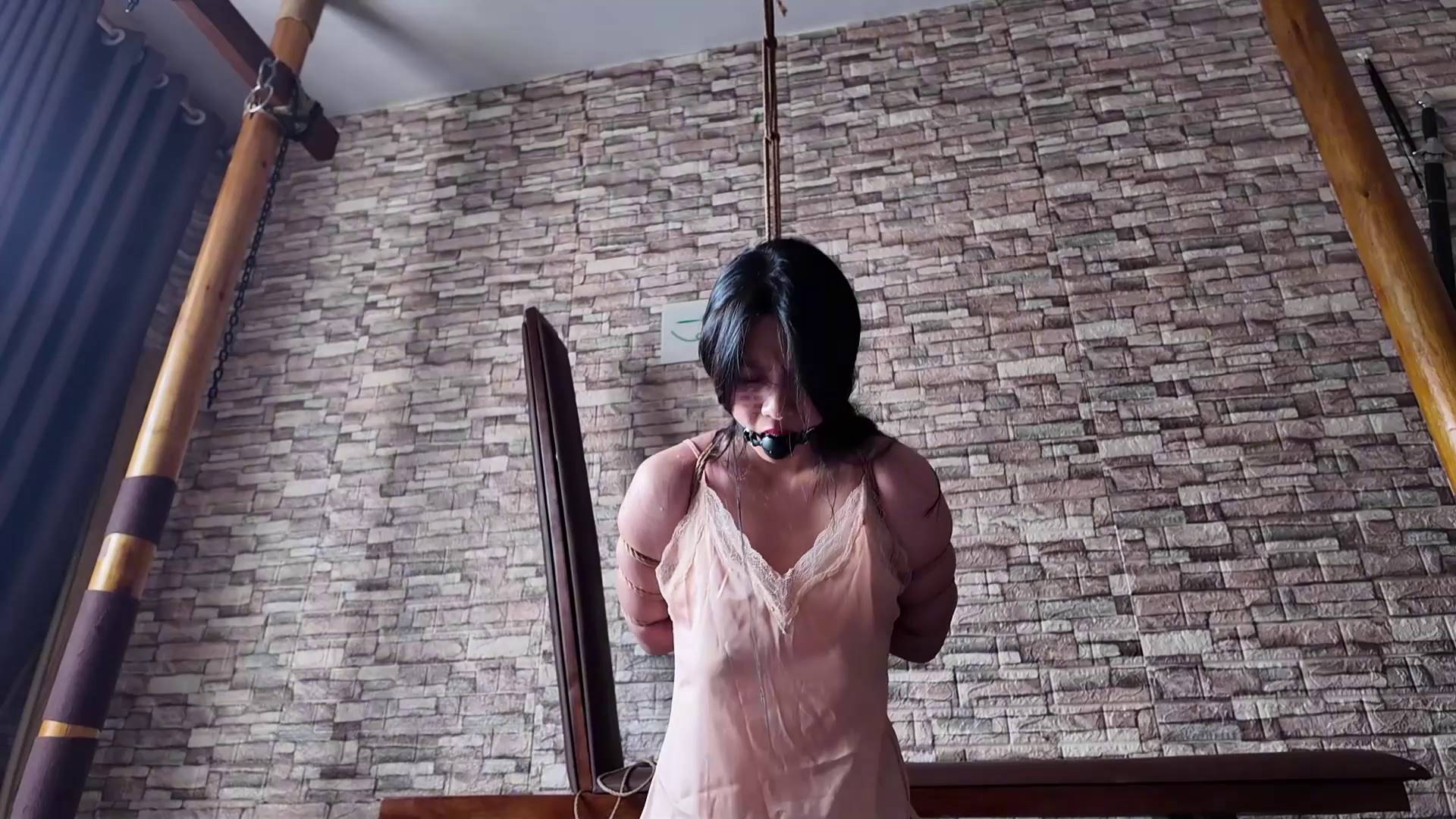 一绳所爱 老鬼定制紫涵闷热堵嘴炼狱上【灰咖丝香肠口球空姐重口原味鞋扣脸口水干呕汗